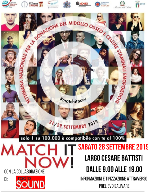 Match It NOW, il 28 settembre con Admo Piacenza la campagna per donare il midollo osseo. Evento in diretta su Radio Sound.