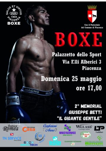 Memorial Giuseppe Betti, la seconda edizione il 25 maggio con i pugili della Salus Et Virtus. “Il gigante buono” sarà ricordato con un grande spettacolo sportivo al Palazzetto dello Sport di Piacenza in via Alberici.
