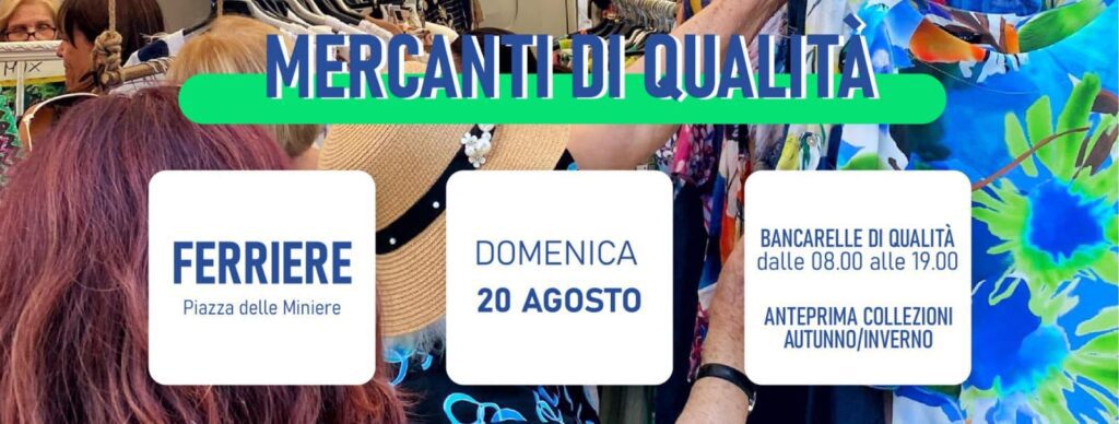 A grande richiesta ritornano a Ferriere domenica 20 agosto i Mercanti di Qualità. I banchi, oltre a proporre il 100% Made in Italy, sono pronti a presentare in anteprima le collezioni moda autunno-inverno.