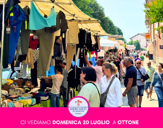 Domenica 20 luglio a Ottone torna la magia dell’estate con i Mercanti di Qualità. Le bancarelle sono pronte ad animare il paese per tutto il giorno con artigianato, creatività e shopping all’aria aperta.