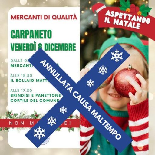 AGGIORNAMENTO: causa maltempo la data a Carpaneto dell’8 dicembre con i Mercanti di Qualità è stata annullata. Rimane confermata la tappa di domenica 10 dicembre a Rivergaro.