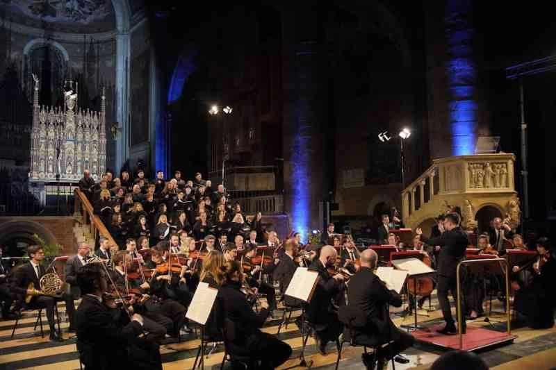 A precedere la Messa pucciniana, sarà l’esecuzione della nuova composizione per orchestra “Si confonda con le stelle del cielo” di Federico Perotti: “Il pezzo vuole essere uno scorcio in un gioco di tensioni tra forze più grandi di noi: dove la mente fa fatica a percepire, forse la musica può far immaginare. – spiega il compositore – La scansione temporale di questo pezzo non è ordinata cronologicamente, proprio come accade al nostro sguardo nella Cattedrale. Il nostro occhio, procedendo nelle navate, vede in modo disordinato opere di secoli differenti che raccontano storie diverse tra loro, ma tutte racchiuse in un luogo di più tempi”.