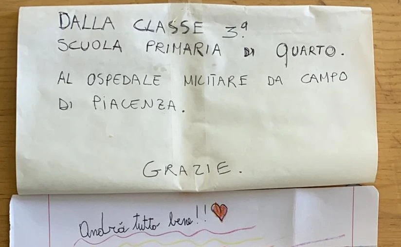 Il grazie dei bimbi di Quarto, pizza e focaccia per i militari dell’ospedale da campo. Alle 13.30 di oggi una gradita sorpresa è giunta presso l’ospedale da Campo realizzato al Polo di Mantenimento Pesante Nord. Pizza per tutti consegnata per conto dei ragazzi della 3° classe primaria di Quarto.