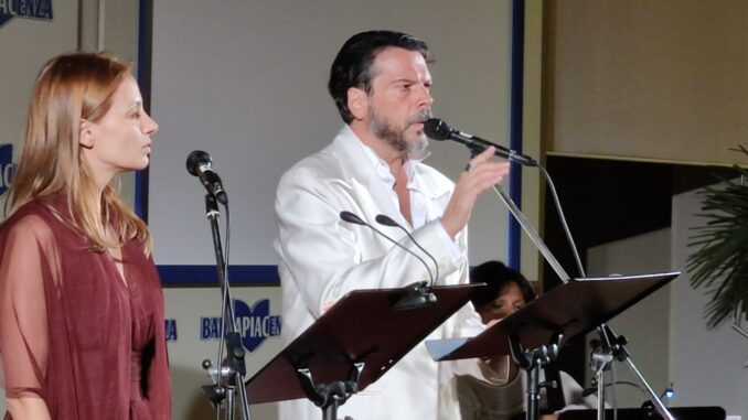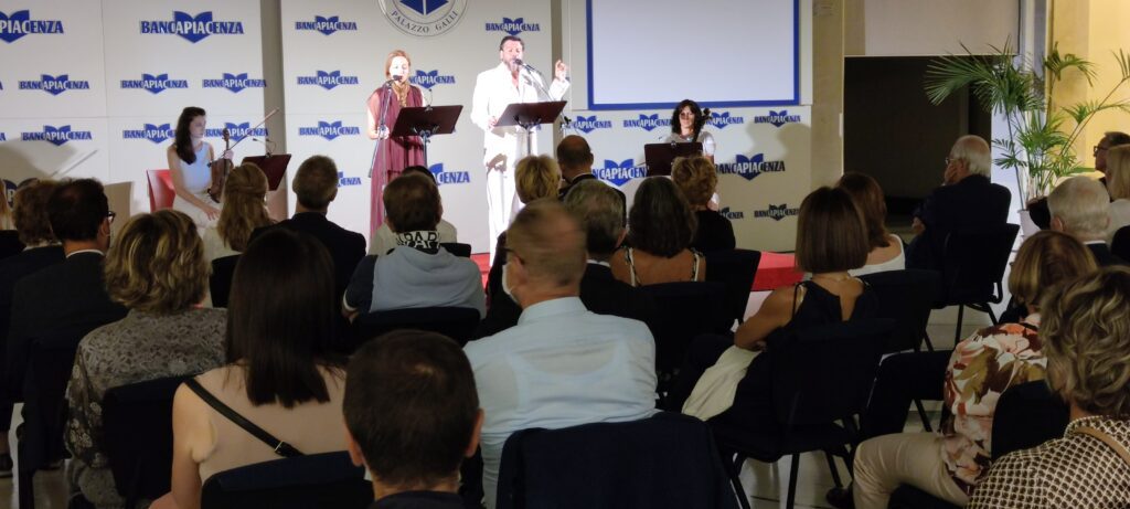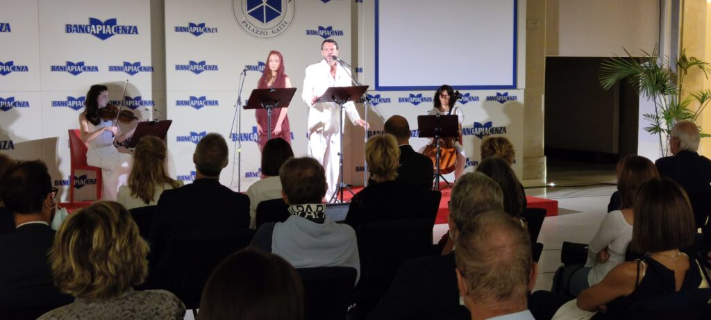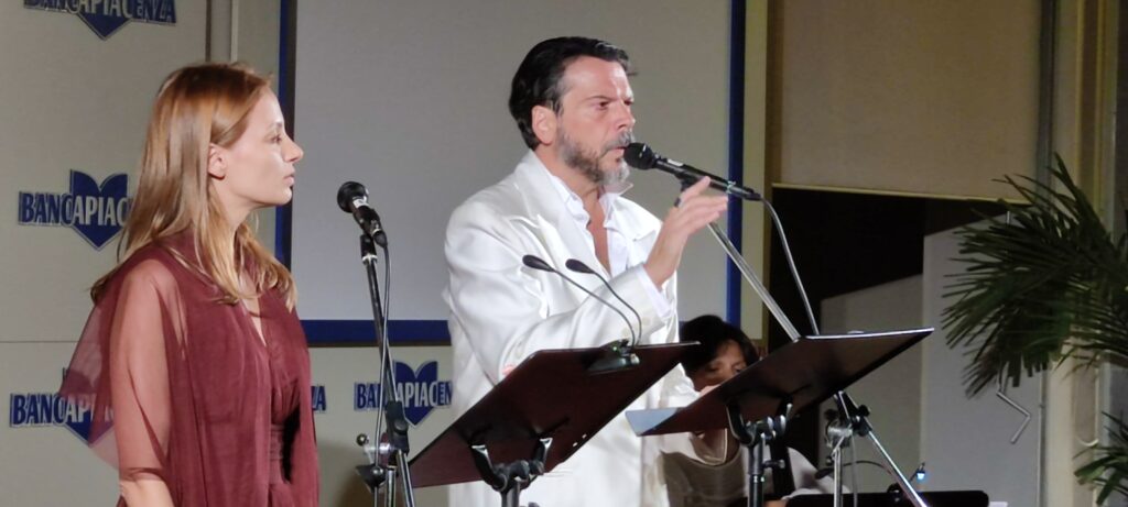 Delicate emozioni a Palazzo Galli della Banca di Piacenza con il reading teatrale di Mino Manni sull’ascesa al Paradiso di Dante, evento di chiusura del convegno nazionale Coordinamento legali di Confedilizia. Il numeroso pubblico ha assistito allo spettacolo in religioso silenzio (definito dall’attore piacentino «splendido» e di cui ha ringraziato: «E’ stato un modo per sentirvi vicino»). Accompagnati da brani musicali di grande effetto (eseguiti da Silvia Mangiarotti al violino e Francesca Ruffilli al violoncello), Mino Manni (recitazione) e Marta Rebecca (canto e recitazione) hanno raccontato la terza tappa della Divina Commedia interpretando ottimamente i canti I (il sommo poeta inizia il suo percorso in Paradiso assistito da Apollo e con Beatrice che gli spiega il significato dell’Universo); XI (San Tommaso pronuncia il panerigico di San Francesco) e XII (San Bonaventura tesse le lodi di San Domenico), con Francesco e Domenico considerati campioni contro la corruzione mandati da Dio sulla terra; XXXI (Dante arriva all’Empireo desideroso di rivolgere un ringraziamento a Beatrice ma trova al suo posto San Bernardo di Chiaravalle, che lo guida all’incontro con Dio); XXXIII (San Bernardo rivolge una preghiera alla Vergine).