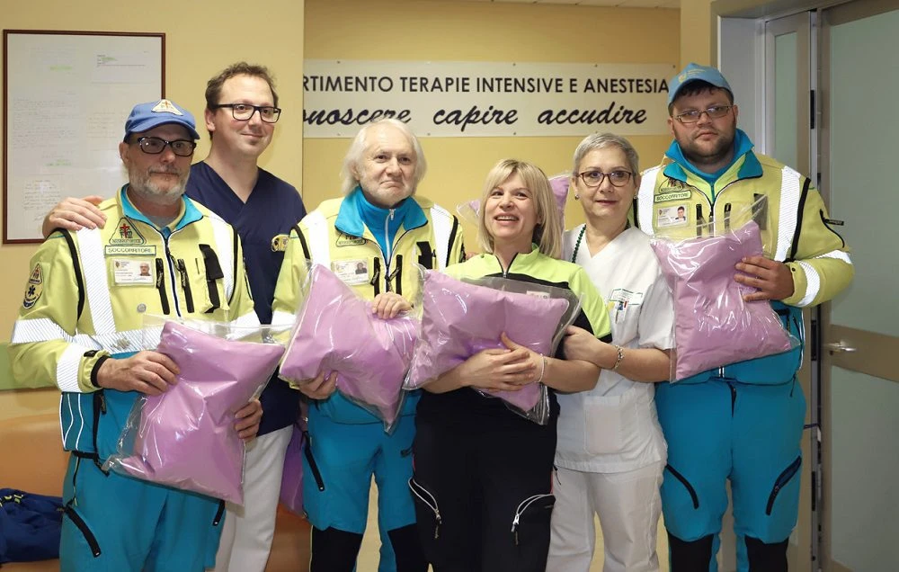 La Confraternita della Misericordia dona otto cuscini al reparto di Rianimazione dell’ospedale di Piacenza. I posizionatori, in microsfere di polistirene, sono utili per il corretto posizionamento dei pazienti; in modo da evitare o limitare la formazione di piaghe da decubito.