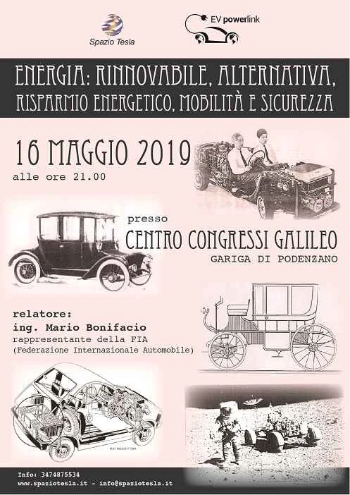 L’approfondimento sulla mobilità elettrica alle soglie del terzo millennio è previsto alle ore 21 al Centro Congressi Galileo a Gariga di Podenzano. Relatore della serata: Ing. Mario bonifacio.