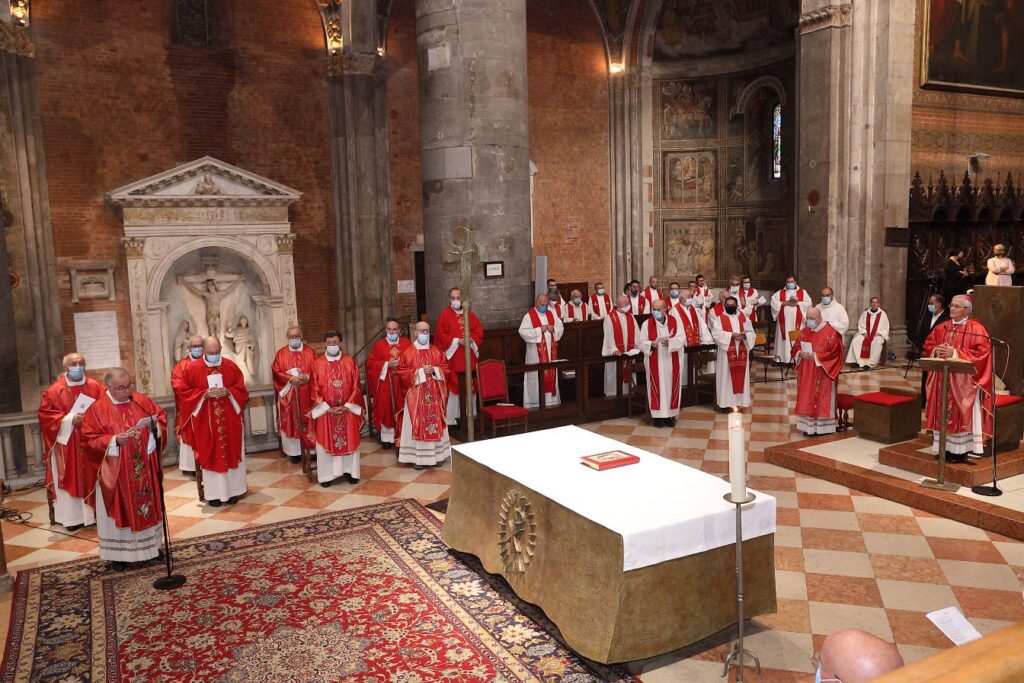 “Consentitemi un accenno personale. Mi è rimasta impressa nella mente una domanda che mons. Eliseo Segalini, sorridendo, mi rivolse nella sacrestia della Cattedrale dopo qualche tempo che ero vescovo di questa diocesi: “Ma dopo questi anni continua ad innamorato della Chiesa di Piacenza-Bobbio?”. La domanda mi sorprese, ma poi risposi: “Sì, lo sono ancora”. Questa sera, dopo quasi tredici anni, lo ridico: sono ancora innamorato di questa Chiesa. Sono contento di aver amato e di amare ciò il Signore mi ha affidato: i fratelli sacerdoti e diaconi, i fratelli e le sorelle di questa terra, ho amato e amo anche i luoghi di questo territorio”.