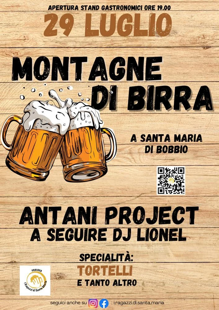 Per la musica: serata Live con Antani Project e DJ Lionel! Info su Facebook: Pro Loco Santa Maria di Bobbio.