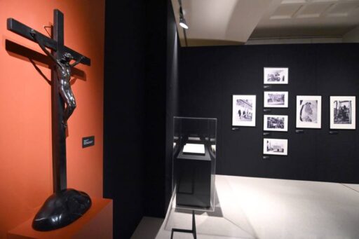 opere contribuisca alla costruzione del mito. Le altre sale della mostra presentano un allestimento più tradizionale, ma coerente con l’impostazione complessiva.