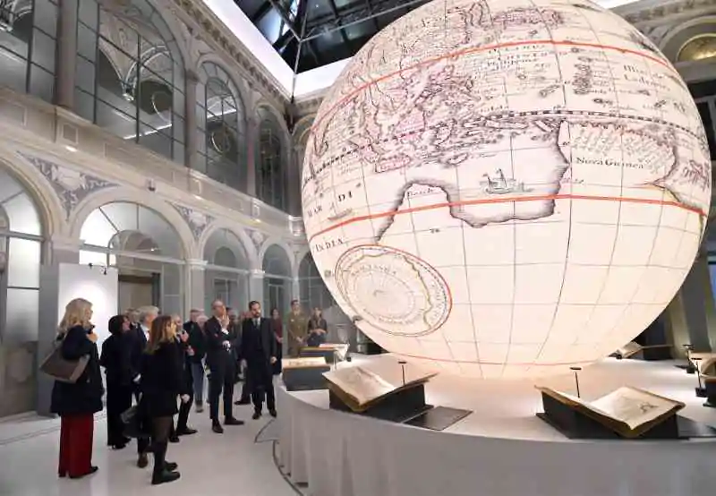 Il globo rappresenta un punto focale di grande impatto visivo, evocando il desiderio di esplorazione e la precisione scientifica che hanno caratterizzato l’opera di Blaeu. L’installazione crea un’atmosfera suggestiva e invita i visitatori a riflettere sulla bellezza della cartografia antica e sulla sua capacità di modellare la nostra comprensione del mondo.