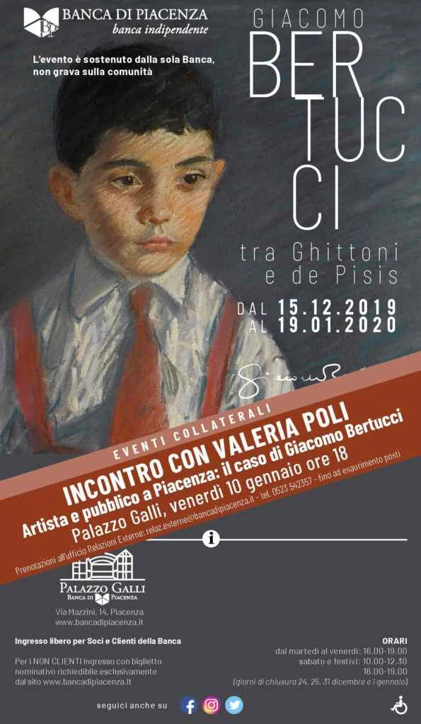 Mostra su Giacomo Bertucci, a palazzo Galli incontro con Valeria Poli. Proseguono le manifestazioni collaterali alla mostra “Giacomo Bertucci tra Ghittoni e de Pisis” organizzata dalla Banca di Piacenza e visitabile fino a domenica 19 gennaio. Venerdì 10 gennaio a Palazzo Galli (Sala Panini, ore 18), la professoressa Valeria Poli terrà una conferenza su “Artista e pubblico a Piacenza: il caso di Giacomo Bertucci”. Un’occasione per ricordare il rapporto privilegiato del pittore con Piacenza, testimoniato dalle numerose mostre, molte delle quali personali, allestite nella nostra città.