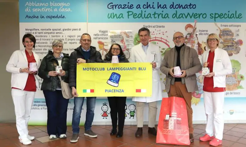 Un panettocino al cioccolato – o, per chi lo preferisce, un mini pandoro – per portare un momento di dolcezza e di festa anche ai piccoli pazienti ricoverati in Pediatria e neonatologia e al Pronto soccorso pediatrico. È il pensiero natalizio che i rappresentanti del Moto Club Lampeggianti Blu Piacenza hanno voluto donare ai bambini che trascorreranno le festività in ospedale.