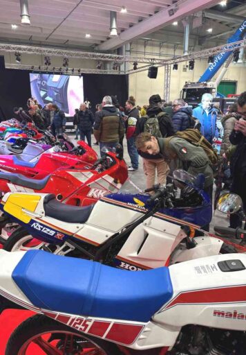 Mentre Reggiani e Capirossi si alternavano sul palco, raccontando aneddoti e curiosità sulle loro carriere agonistiche e confessando la loro sfrenata passione per le moto a due tempi, gli stand di Piacenza Expo hanno continuato ad essere affollati da tantissimi visitatori desiderosi di vedere da vicino, studiare e fotografare non solo i bolidi da strada e da competizione esposti nel Padiglione 1, ma anche i mezzi a “ruote tassellate” presenti quest’anno per la prima volta nel Padiglione 2. E tra gli ospiti illustri anche l’endurista piacentino Paolo Fellegara, vincitore nel 1989 della Sei Giorni Internazionale di Enduro che ha assegnato all’Italia il titolo di campione del mondo a squadre.