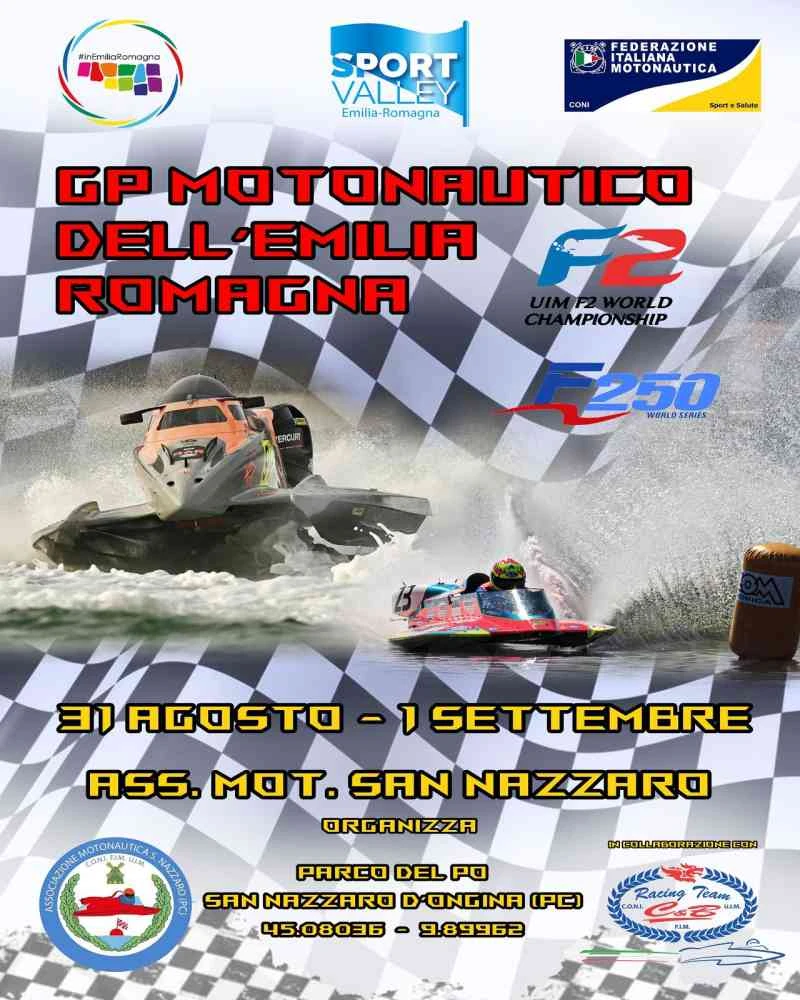 L’appuntamento, organizzato dalla Motonautica San Nazzaro in collaborazione con C&B racing team ASD, è supportato della Regione Emilia Romagna con Sport Valley e dalla Federazione Italiana Motonautica.