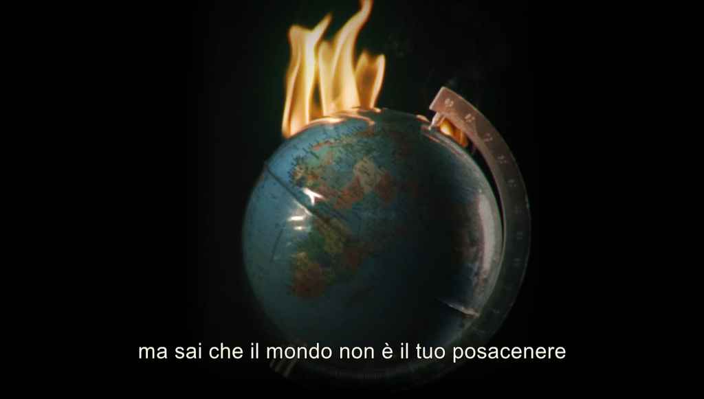 Alla fine del brano, che si chiude con un ritornello incisivo, appare in video qualche dato interessante sull’inquinamento da plastica e viene rivolto un secco invito allo spettatore: Muoviti A Scegliere.