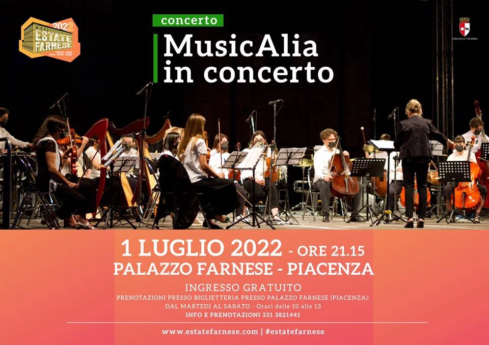 Venerdì 1 luglio alle ore 21.15, il cortile monumentale di palazzo Farnese sarà la scenografia, sotto il cielo stellato, dell’evento – organizzato nell’ambito della seconda edizione di #EstateFarnese promossa dall’assessorato alla Cultura – “MusicAlia in concerto”, a cura dell’omonima Orchestra stabile composta da ragazzi con disabilità fisiche e fragilità psichiche, affiancati da musicisti professionisti, educatori e operatori formati con il metodo Esagramma. Diretta da Franco Marzaroli e Alessandra Capelli, l’Orchestra MusicAlia suonerà brani tratti dalla “Carmen” di Bizet (Preludio, Intermezzo, Les Toreador), dalla colonna sonora del film “Momenti di gloria” composta da Vangelis, il brano “Gabriel’s oboe” scritto da Ennio Morricone per il film “Mission” di Martin Scorsese, le Danze ungheresi n. 5 e 6 di Johannes Brahms e l’Inno di Sant’Antonino (anonimo).