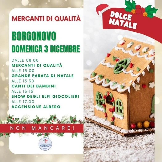 Dolce Natale a Borgonovo con i Mercanti di Qualità il 3 dicembre. Una domenica magica e speciale per lo shopping natalizio Made in Italy, grazie alla presenza di oltre 50 banchi in via Roma e piazza De Cristoforis. Per rendere ancora più bella la giornata presenti anche i creativi, gli artigiani e i food truck.