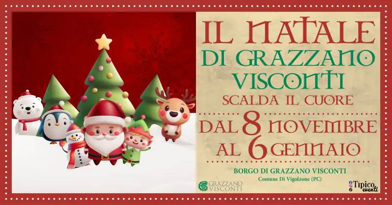 Anche quest’anno, dal 8 novembre al 6 gennaio, il suggestivo borgo di Grazzano Visconti (Comune di Vigolzone, Piacenza) ospiterà il tradizionale villaggio natalizio, che ormai da diversi anni è diventato un appuntamento imperdibile per chi ama immergersi nella magica atmosfera del Natale. Tantissime novità accompagneranno gli immancabili mercatini nel Borgo!