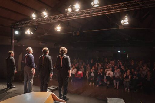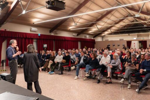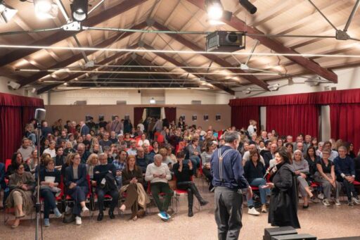 La serata è proseguita con un incontro con il pubblico, durante il quale sono emersi ulteriori spunti di lettura dello spettacolo. In particolare, la direttrice artistica ha evidenziato la peculiare modalità con cui Perrotta affronta il tema dell’identità: non in forma astratta, ma attraverso il racconto di una figura emblematica come Modugno, capace di incarnare, con la propria vicenda, l’evoluzione culturale e sociale di un intero Paese. Pedrazzini ha inoltre richiamato il filo tematico delle “nuvole”, elemento cardine del trittico e della mostra inaugurata da poco a XNL, sottolineandone la presenza anche nella produzione musicale di Modugno – da Cosa sono le nuvole, scritta con Pier Paolo Pasolini, al celebre verso di Dio come ti amo: “Nel cielo passano le nuvole”.