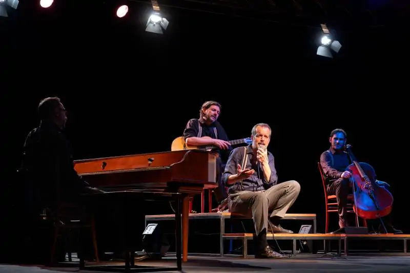 La serata si è aperta con l’introduzione di Pedrazzini che ha raccontato il percorso curatoriale – una riflessione sulle ‘nuvole’ come metafora esistenziale dell’identità umana – che nel secondo appuntamento del trittico – Nel blu – ha messo al centro la figura di Domenico Modugno, restituendo attraverso la sua parabola artistica e umana un affresco dell’identità italiana nel passaggio cruciale del dopoguerra e del boom economico. In scena, Perrotta ha saputo intrecciare biografia individuale e memoria collettiva, dando vita a una narrazione intensa, sostenuta dalla musica eseguita dal vivo, elemento drammaturgico centrale capace di amplificare emozioni e significati.
