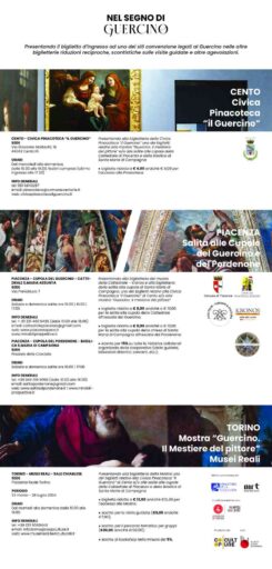 L’accordo, valido sino a fine anno, prevede il riconoscimento di agevolazioni per i cittadini che, in possesso del biglietto di ingresso all’esposizione piemontese, alla Civica Pinacoteca di Cento – intitolata proprio al secentesco artista cui la città ha dato i natali – o alle cupole del Guercino e del Pordenone a Piacenza, unite nell’iniziativa “Mirabili Prospettive”, scelgano di visitare anche gli altri beni culturali oggetto della collaborazione.