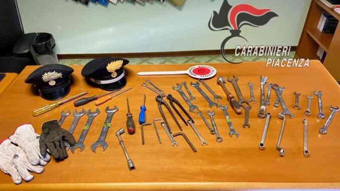 Nella circostanza i carabinieri, dopo aver notato l’auto che arrestava la corsa tentando di invertire il proprio senso di marcia, intimato l’alt ai quattro sospetti, hanno proceduto all’identificazione degli stessi ed all’immediata perquisizione del veicolo, sul quale hanno rinvenuto in uno zaino guanti, alcune chiavi inglesi ed esagonali, tronchesi, vari cacciaviti e grimaldelli, tipicamente usati come strumenti di effrazione.