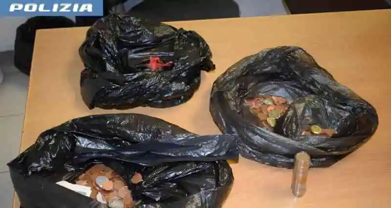 Il tutto con esito positivo. Infatti al suo interno i poliziotti hanno rinvenuto diverse buste di colore nero contenenti varie monete (oltre un centinaio) di piccolo taglio da 1, 2 e 5 centesimi di euro e alcune banconote di diverso valore, anche appartenenti a valuta straniera.