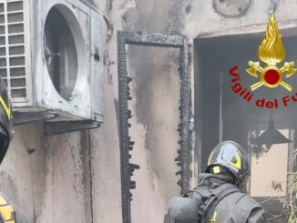 Fiamme dal motore esterno del climatizzatore, vigili del fuoco in azione in Vicolo del Guazzo – FOTO