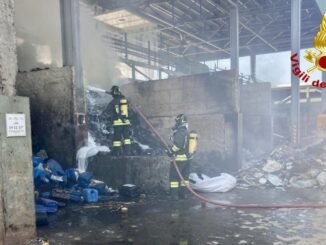 Incendio in una fabbrica di smaltimento rifiuti, vigili del fuoco al lavoro – FOTO