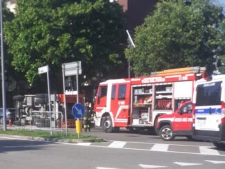 Brutto incidente per una squadra di vigili del fuoco. Intervenuti in via Motti a Piacenza pe un intervento, l’autobotte