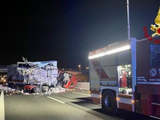 Tir perde il controllo in autostrada a Fiorenzuola e si schianta contro il pilone di un cavalcavia – FOTO