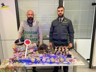 Potenzialmente pericolosi per la salute, la guardia di finanza sequestra 1500 articoli natalizi in un negozio piacentino