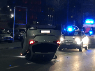 Dopo lo schianto si ribalta in mezzo alla strada. I fatti sono accaduti in via Colombo questo pomeriggio. Da