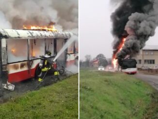Autobus in fiamme a Roncaglia, intervengono i vigili del fuoco – FOTO e VIDEO