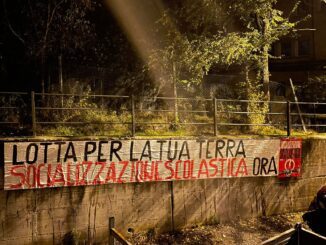 “Lotta per la tua terra, socializzazione scolastica ora”, questo il testo sullo striscione affisso nella città di Bobbio dai