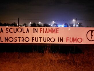 “La scuola in fiamme, il nostro futuro in fumo”. Questa la frase riportata sullo striscione affisso dai militanti del