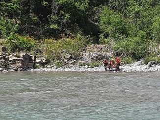 Ferita alla caviglia e bloccata sulla sponda del Trebbia, soccorsa e trasportata in barella attraverso il fiume. Un gruppo