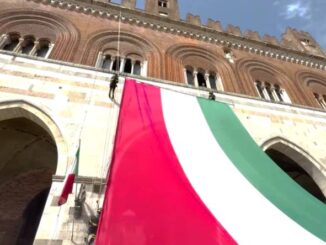 Piazza Cavalli gremita per le celebrazioni del 2 giugno: piccolo fuori programma, Tricolore esposto al contrario sulla facciata del Gotico – VIDEO e FOTO