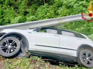 Con l’auto abbatte il guard rail e resta in bilico sull’orlo di un canale, spaventoso incidente a Croara – FOTO