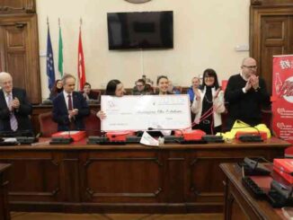 La presidente dell’associazione Oltre l’Autismo Maria Grazia Ballerini, affiancata dal volontario Roberto Colla, ha presentato il resoconto dell’iniziativa di