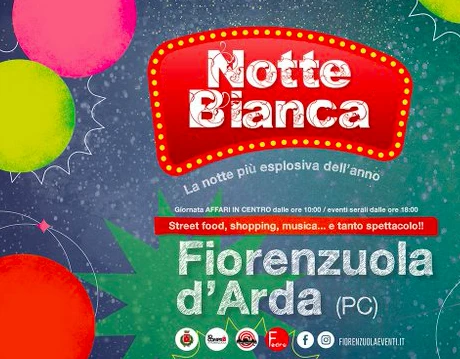 Notte Bianca a Fiorenzuola il 24 giugno, la più esplosiva dell’anno. Un evento all’insegna dello shopping e promozioni con Affari in Centro a partire già dalle ore 10:00 della mattina fino a tarda sera. E poi dalle ore 18:00 tanti eventi, street food con musica e soprattutto tanto spettacolo in tutte le piazze e le vie della città.