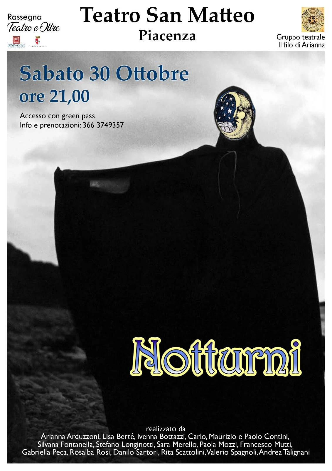 All’interno della rassega teatrale “ Teatro e Oltre” che si sta tenendo al Teatro San Matteo sabato 30 ottobre alle 21, la Compagnia Teatrale “Filo d’Arianna” presenterà lo spettacolo “Notturni”, sette atti unici tra l’onirico e l’ironico.