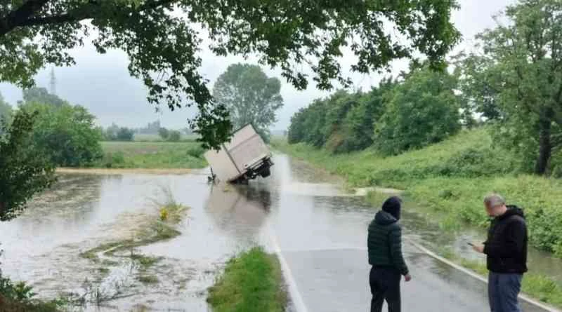 Si segnalano strade allagate e sottopassi trasformati in piscine. A San Nazzaro un mezzo pesante ha perso il controllo ed è uscito di strada proprio a causa dell’acqua che ha invaso la carreggiata.