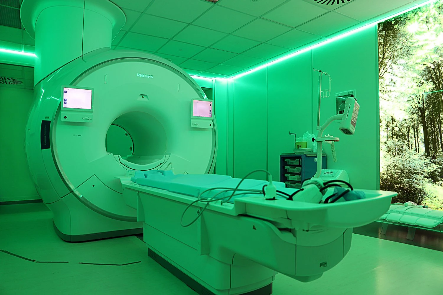 Anche l’allestimento della sala che ospita la nuova apparecchiatura contribuisce ad aumentare il comfort del paziente: l’ambiente è dotato di luci colorate e di un’immagine con soggetto naturale che contribuisce a rendere più rilassante la seduta. Inoltre, la persona può ascoltare musica durante l’esecuzione dell’esame.