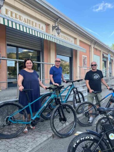 Oggi, il parco di ebike disponibili al noleggio presso la ferramenta di Piazza Combattenti a Nibbiano, che si occupa del servizio, si accresce di due nuove unità: si tratta di due nuove e-mountain bike che si vanno ad aggiungere agli altri tipi di velocipedi disponibili e che sono state tenute a battesimo dal Sindaco Franco Albertini insieme al consigliere Carlo Fontana e da Michela Picchioni responsabile del servizio di noleggio.
