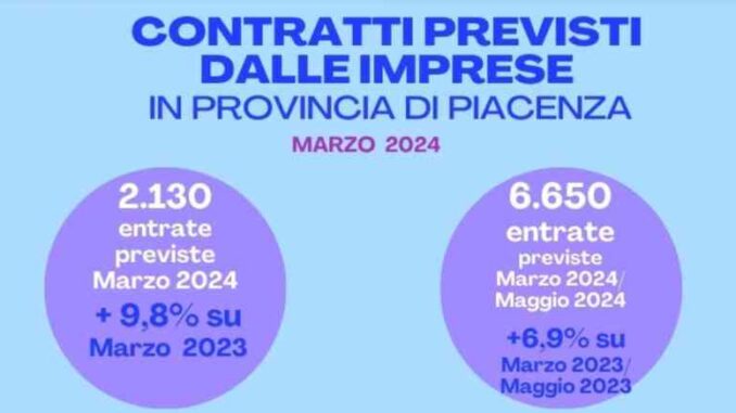In linea con gli andamenti degli ultimi mesi, anche per il trimestre marzo-maggio è previsto un aumento dei nuovi contratti all’interno del sistema imprenditoriale piacentino.