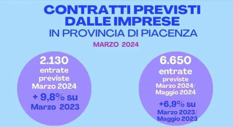 In linea con gli andamenti degli ultimi mesi, anche per il trimestre marzo-maggio è previsto un aumento dei nuovi contratti all’interno del sistema imprenditoriale piacentino.