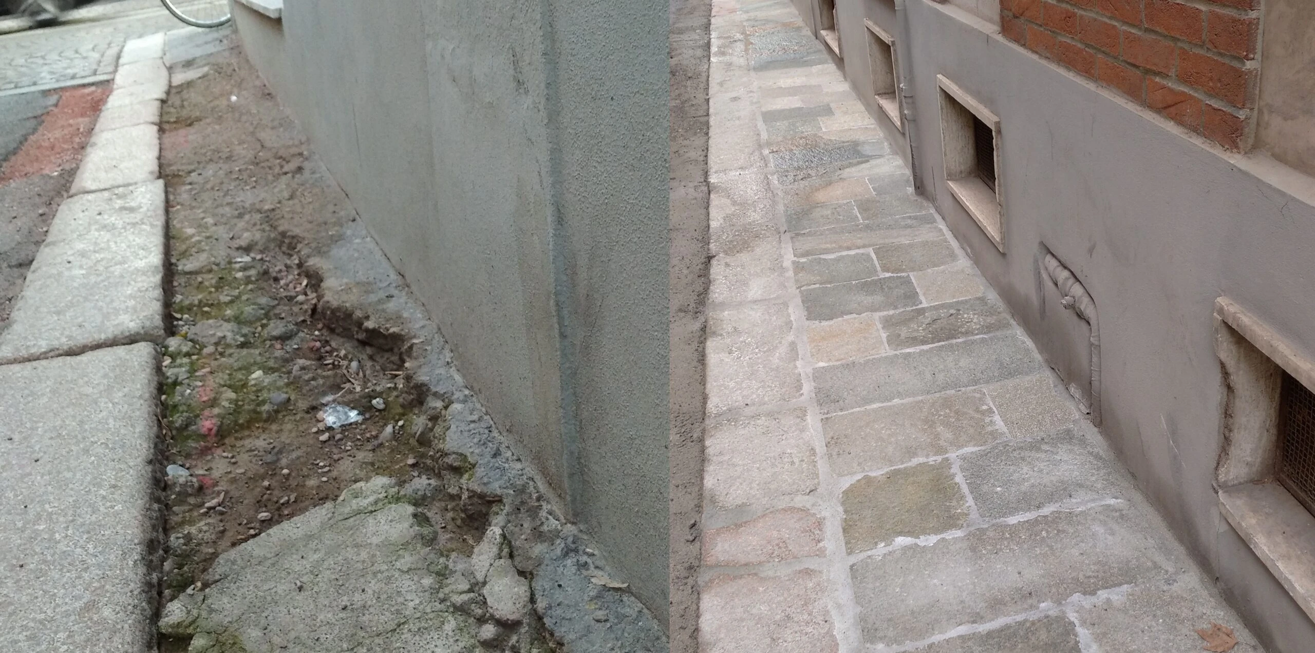 I marciapiedi di via Somaglia e via San Bernardo, che erano pavimentati con con materiale vario – calcestruzzo, pietre ammalorate, mattoni, conglomerato bituminoso – sono stati ripavimentati in pietra, sia utilizzando le pietre esistenti ancora in buono stato sia mediante la fornitura di nuove lastre in pietra di Luserna.