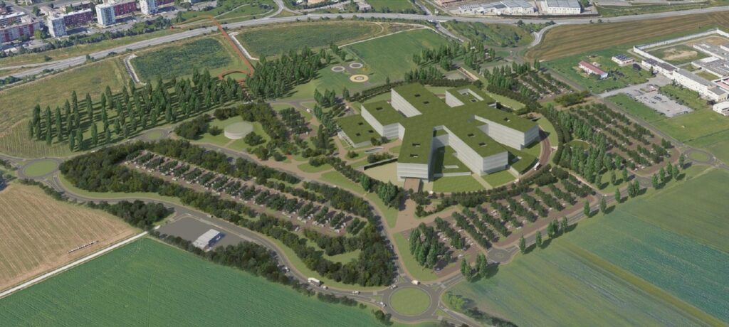 Nel complesso ospedaliero, che si svilupperà su una superficie complessiva di 272.000 mq, troveranno spazio non solo una nuova pista per l’atterraggio dell’elisoccorso, ma anche elementi di attenzione all’utenza e al personale interno: grandi spazi verdi, strade di collegamento, un percorso ciclo pedonale, aree attrezzate per la sosta e 1200 parcheggi.