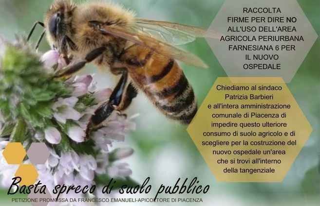Una petizione per dire no alla costruzione dell’ospedale nell’area 6, alla Farnesiana. L’area avrebbe infatti una marcata importanza sotto il profilo naturalistico. E’ stato Francesco Emanueli, apicoltore piacentino, ad avviare la petizione. Petizione avviata anche online sul sito Change.org.